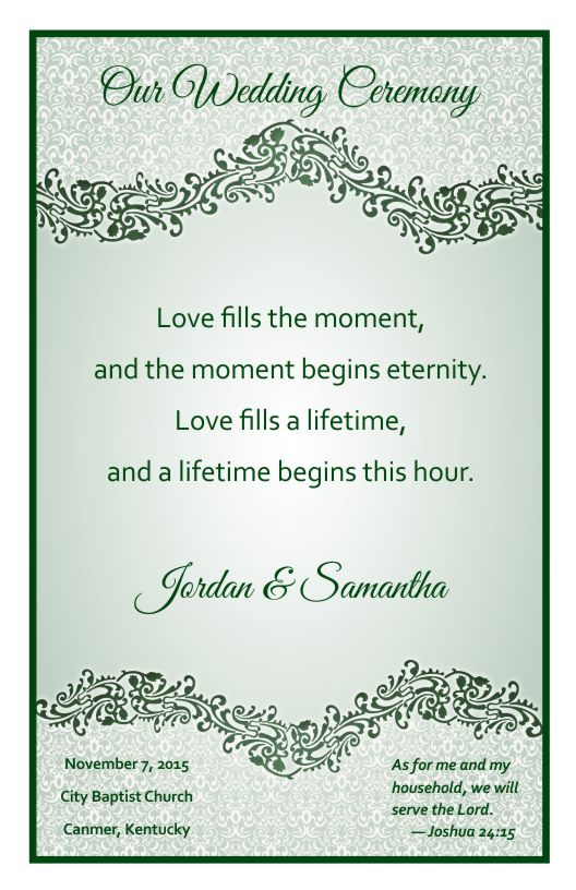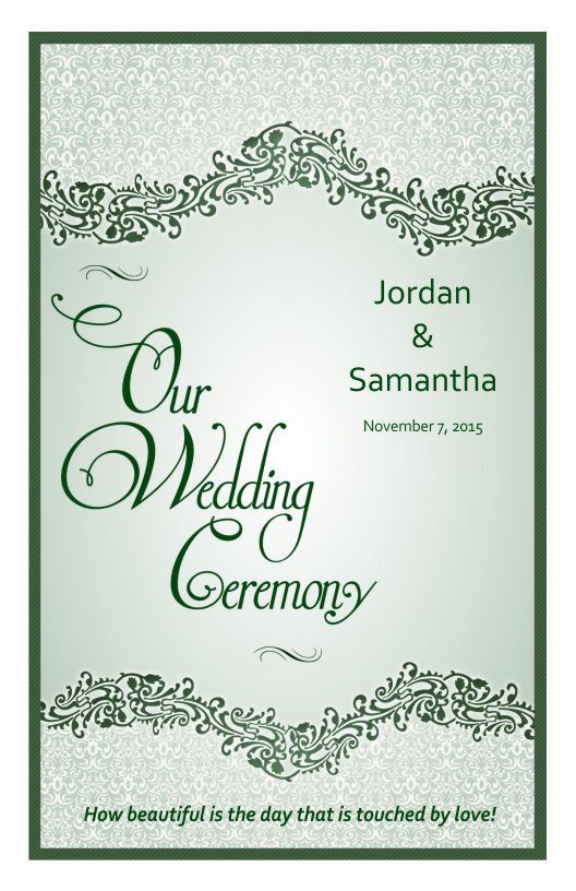 Use wedding program cover template to create your own wedding programs. Template 4B offers 4 different pre-designed layouts with wording or download any of the 8 graphics and customize your own ceremony wording.