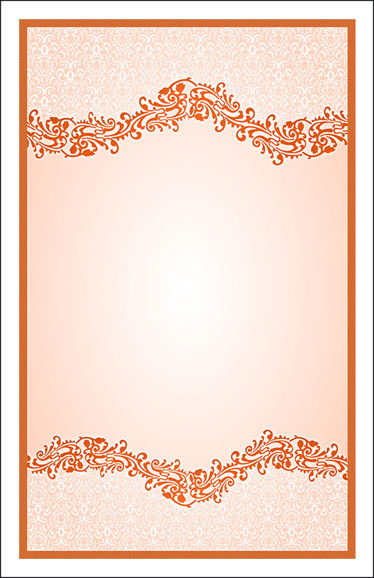 This design includes shades of orange floral background with orange wording. Offers lots of space for wording as the majority of design is light enough to easily read the words that overprint the background graphic.