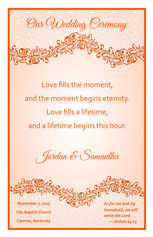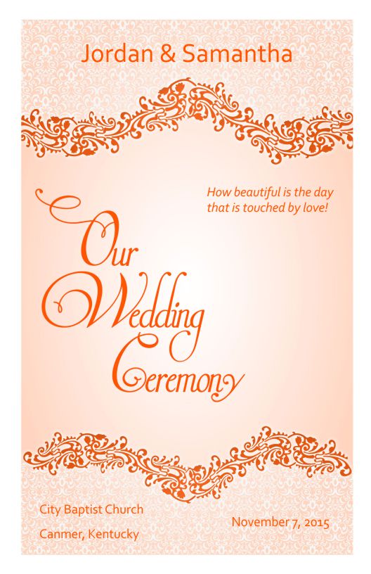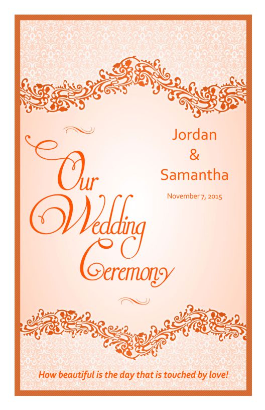 Use wedding program cover template to create your own wedding programs. Template 4C offers 4 different pre-designed layouts with wording or download any of the 8 graphics and customize your own ceremony wording.