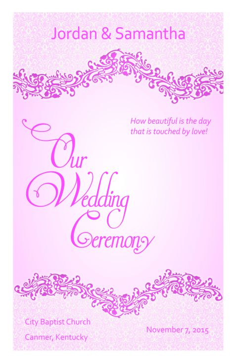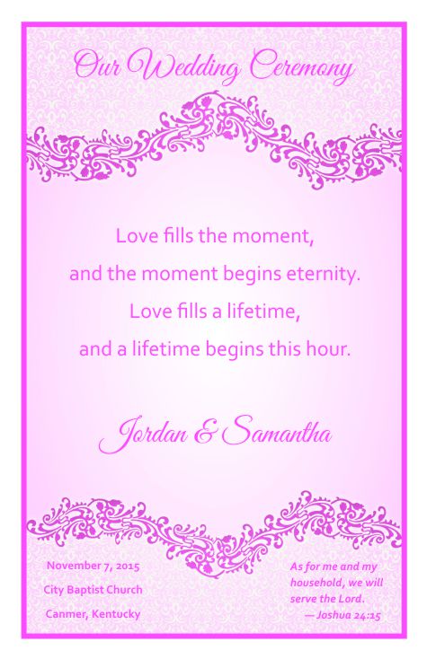 Use wedding program cover template to create your own wedding programs. Template 4G offers 4 different pre-designed layouts with wording or download any of the 8 graphics and customize your own ceremony wording.