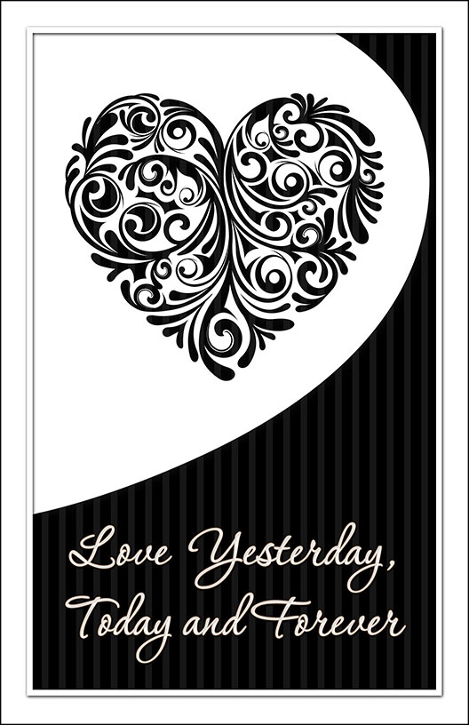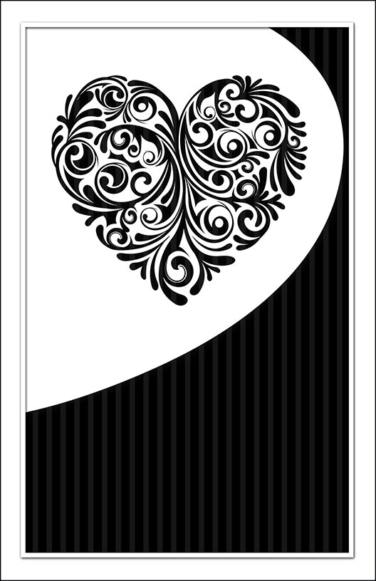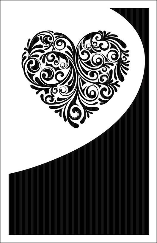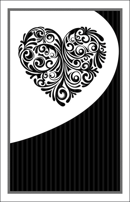 Cover Design 6A includes a black floral heart design at top center with black and light gray striped background. Some designs include a pre-designed border and wording.