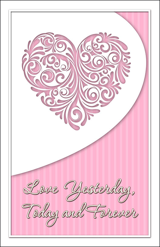 Cover Design 6D includes a pink floral heart design at top center with pink and light pink striped background. Some designs include a pre-designed border and wording.