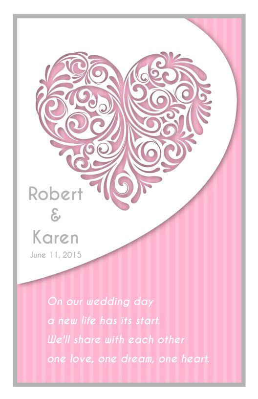 Design fits a standard 8 1/2" x 11" folded sheet, finished size is 5 1/2" x 8 1/2" and are designed to be used with our wedding program templates (links on this page).