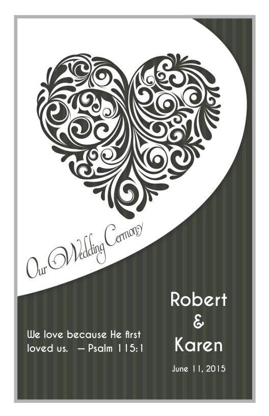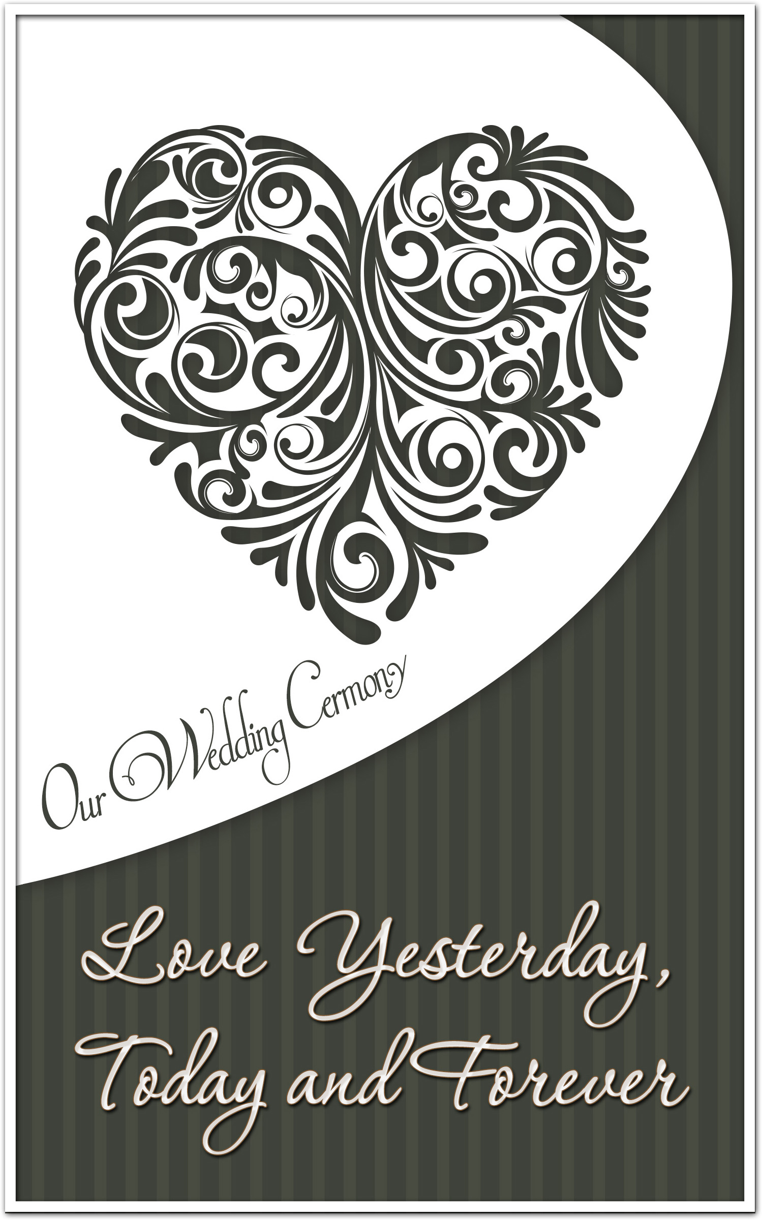 Use wedding program cover template to create your own wedding programs. Template 6F offers 4 different pre-designed layouts with wording or download any of the 7 graphics and customize your own ceremony wording.
