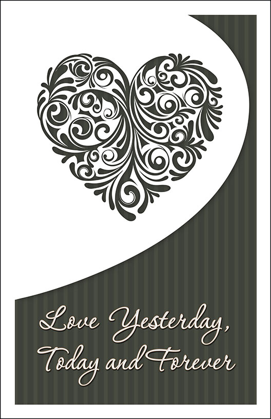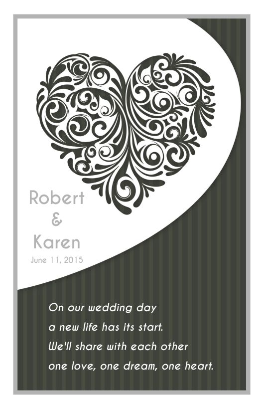 Design fits a standard 8 1/2" x 11" folded sheet, finished size is 5 1/2" x 8 1/2" and are designed to be used with our wedding program templates (links on this page).