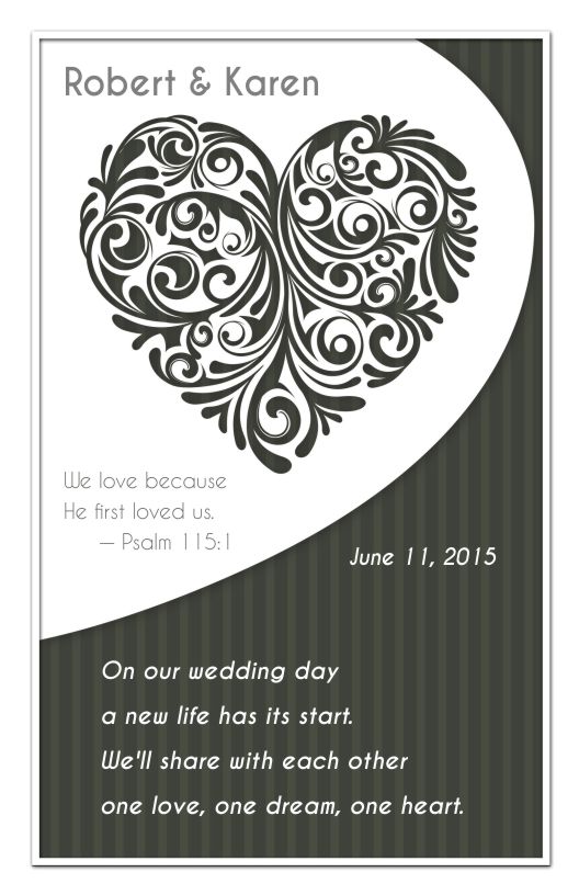Verse and Our Wedding Ceremony cannot be edited. Add your details in blank areas.