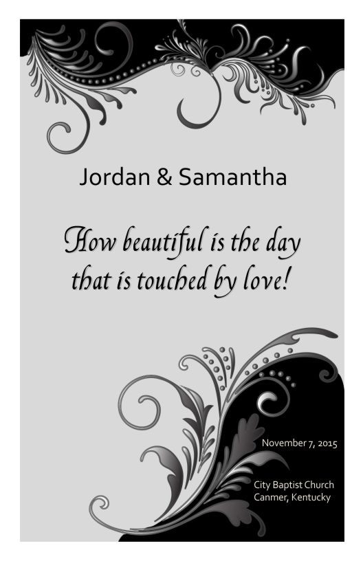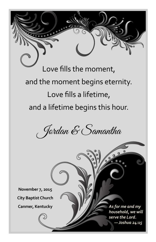 Use wedding program cover template to create your own wedding programs. Template 8E offers 4 different pre-designed layouts with wording or download any of the 5 graphics and customize your own ceremony wording.