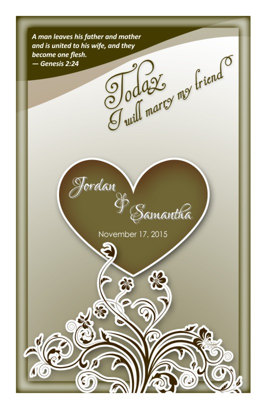 Design fits a standard 8 1/2" x 11" folded sheet, finished size is 5 1/2" x 8 1/2" and are designed to be used with our wedding program templates (links on this page).
