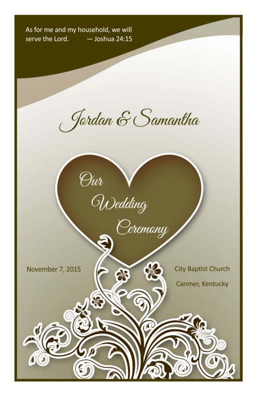 Use wedding program cover template to create your own wedding programs. Template 9E offers 3 different pre-designed layouts with wording or download any of the 6 graphics and customize with your own ceremony wording.