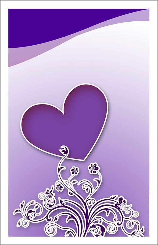 Cover Design 9F includes a large purple and white floral motif that extends to the bottom of the design. A gradient purple background is behind the motif and a shaded purple heart.