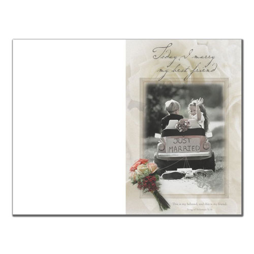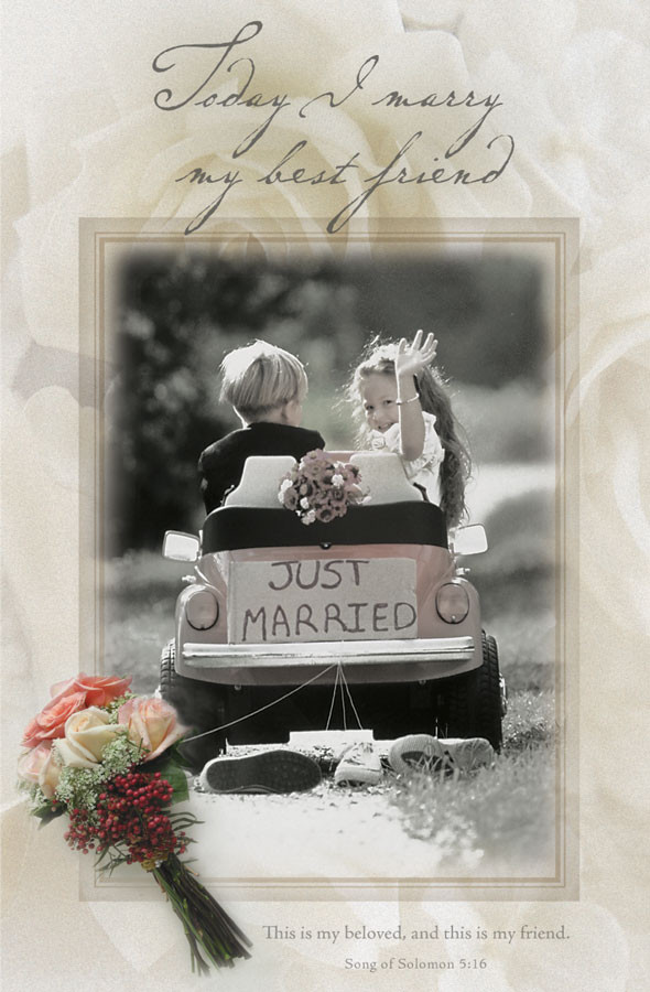 The phrase, Today I marry my best friend at top and the bible verse - This is my beloved, and this is my friend. Song of Solomon 5:16 at bottom of cover.