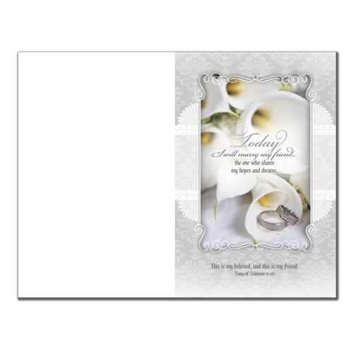 The bible verse: This is my beloved, and this is my friend. Song of Solomon 5:16 is at bottom center of program.