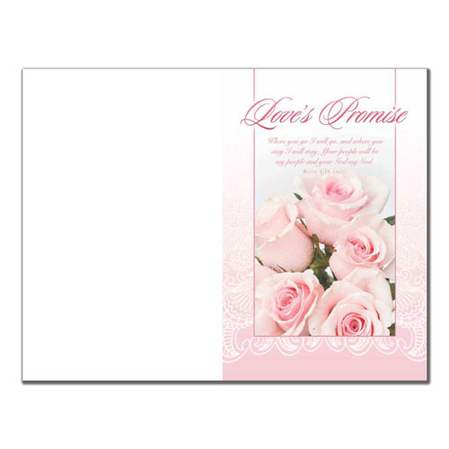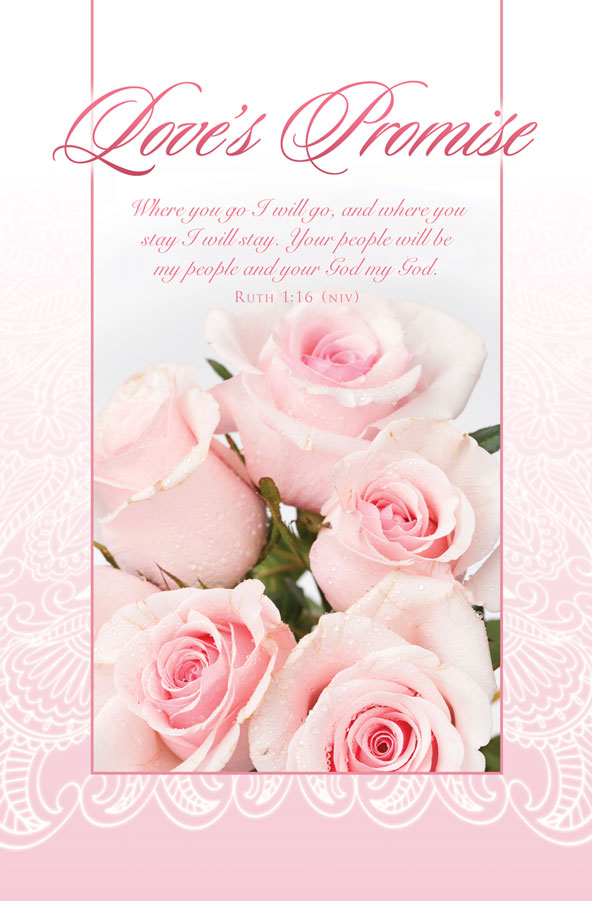 Wedding program paper design 6341 has a light pink floral background and light pink flowers with the heading Love's Promise.