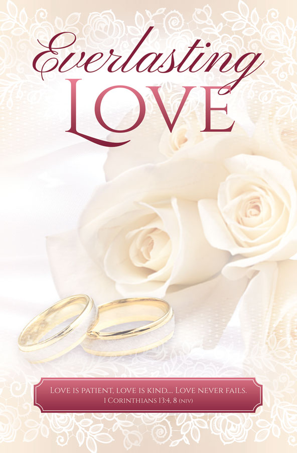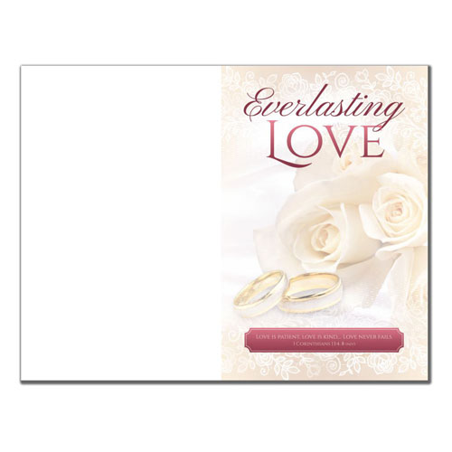 Wedding program paper design 6371 displays light beige flowers and wedding rings along with the wording Everlasting Love at top.