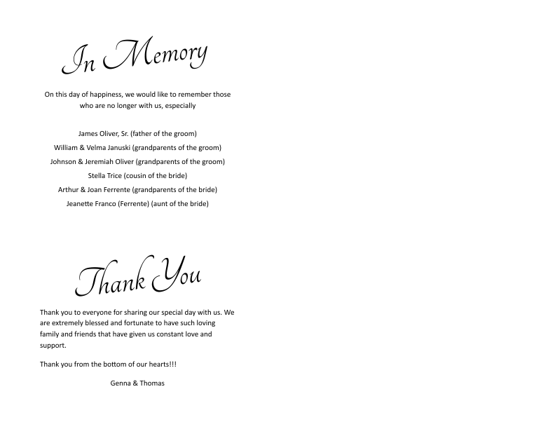 Template 11 - Back (blank right side of sheet is where the pre-printed wedding cover graphic would be shown). You can see and example of this type of paper at right.