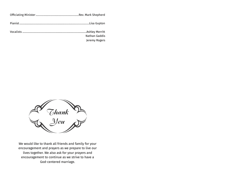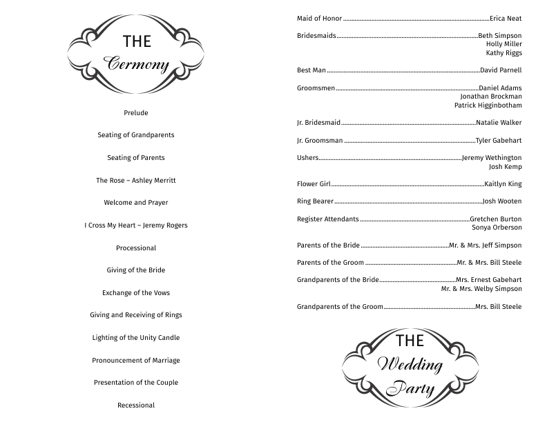 Wedding program templates are designed for printing on our pre-printed letter size wedding program paper. You can view our selection of program paper by clicking the wedding program paper tab at right. They can also be printed on blank, 8 1/2" x 11" paper. Program template can be printed on both sides of the sheet and have a finished folded size of 5 1/2" x 8 1/2".